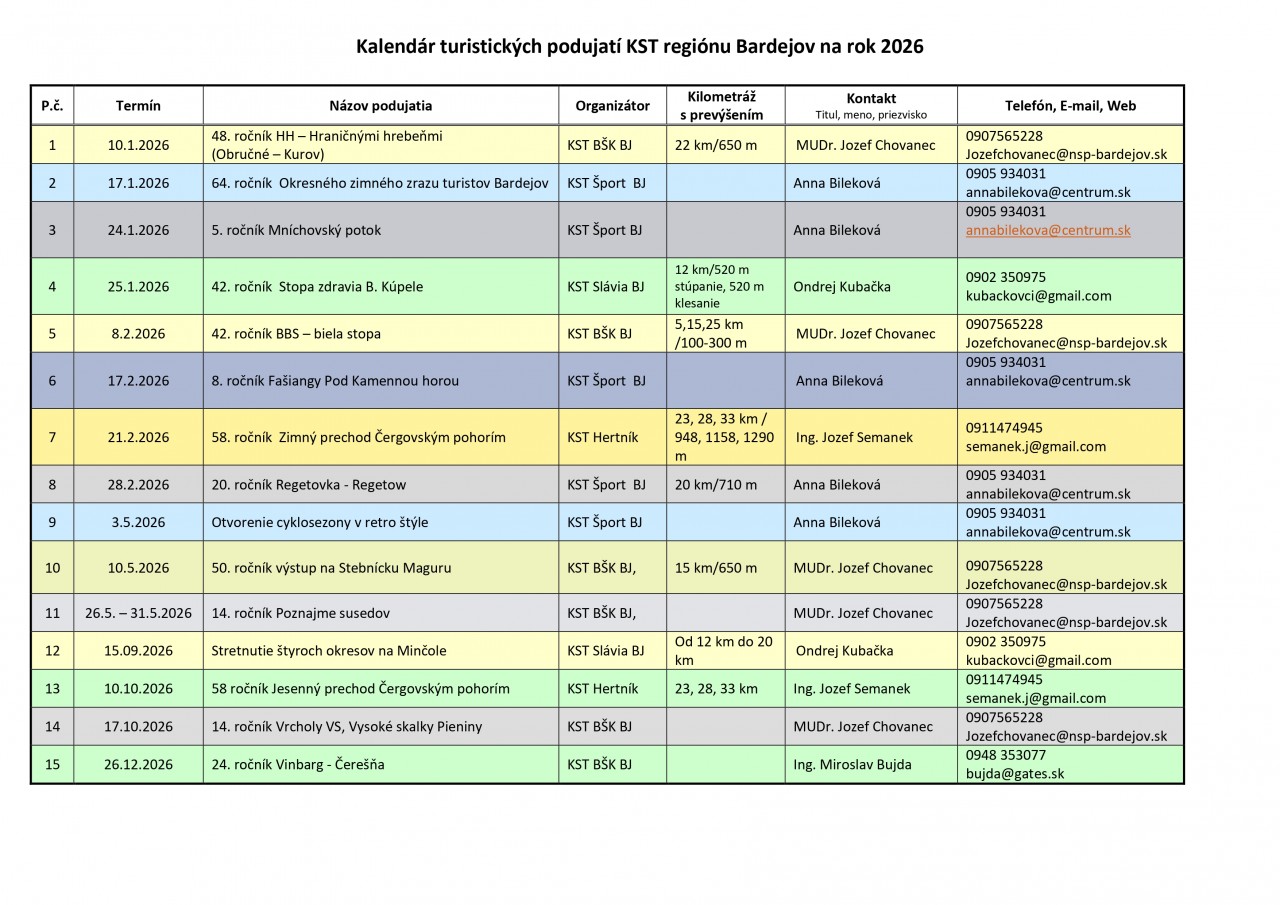 - Kalendár hlavných akcií KST v okrese Bardejov v r. 2026 (klikni sem pre stiahnutie)