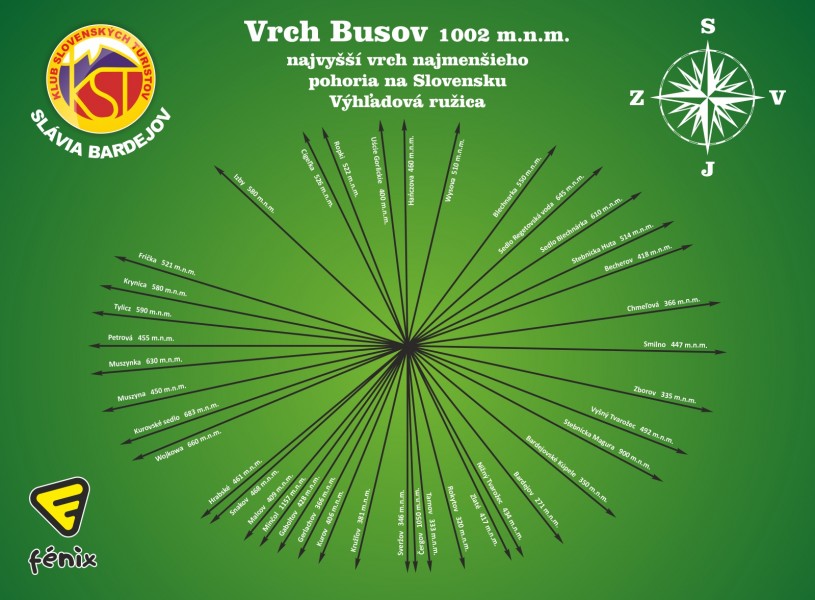 Pohorie Busov je so svojou rozlohou 102 km2 najmenším pohorím na Slovensku. V rámci každoročného okresného výstupu na jeho najvyšší vrch - rovnomenný Busov - turisti z KST Slávia Bardejov osadili na vrchole výhľadovú ružicu.